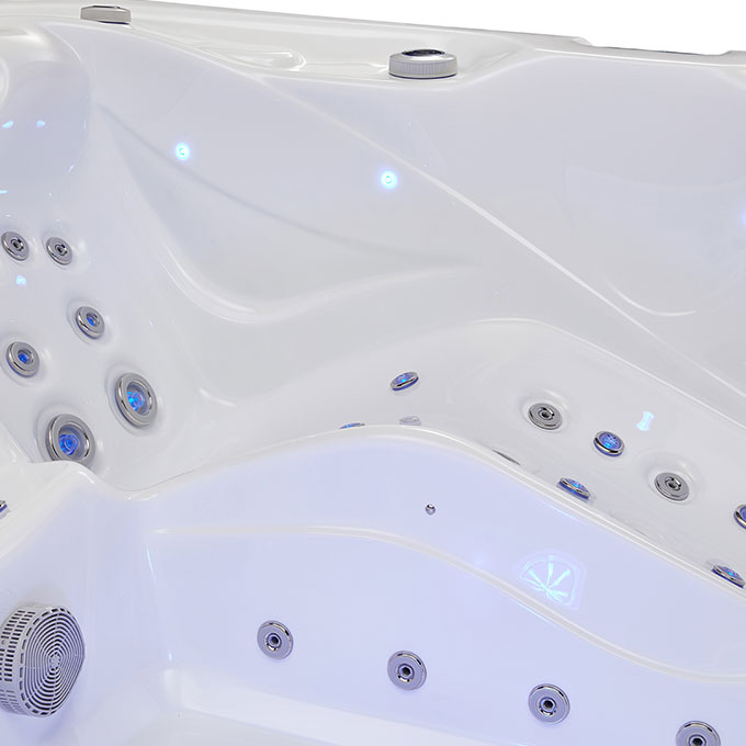 Просторная чаша с эргономичным дизайном легко вмещает трех человек, позволяя наслаждаться сеансом гидромассажа в приятной компании или в уединении.